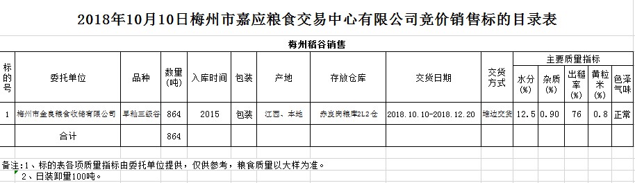 交易時(shí)間和地點(diǎn):2018年10月10日(星期三)上午10時(shí)。廣東省梅州市彬芳大道南161號梅州市糧食交易中心3樓。