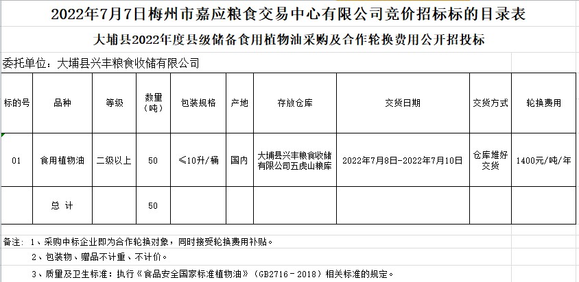 大埔縣2022年度縣級(jí)儲(chǔ)備食用植物油采購(gòu)及合作輪換費(fèi)用公開招投標(biāo)公告