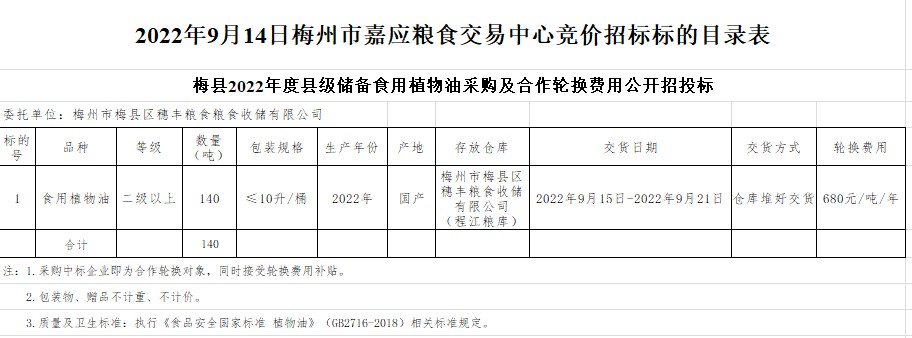 梅縣2022年度縣級儲備食用植物油采購及合作輪換費(fèi)用公開招投標(biāo)公告