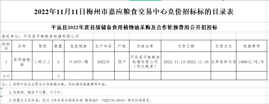 平遠縣2022年度縣級儲備食用植物油采購及合作輪換費用公開招投標公告