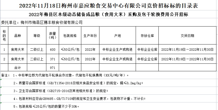 梅縣區(qū)2022年本級(jí)動(dòng)態(tài)儲(chǔ)備成品糧采購(gòu)及包干輪換費(fèi)用公開招投標(biāo)公告