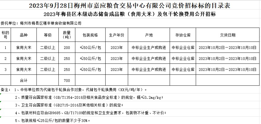 梅縣區(qū)2023年本級動態(tài)儲備成品糧采購及包干輪換費用公開招投標公告