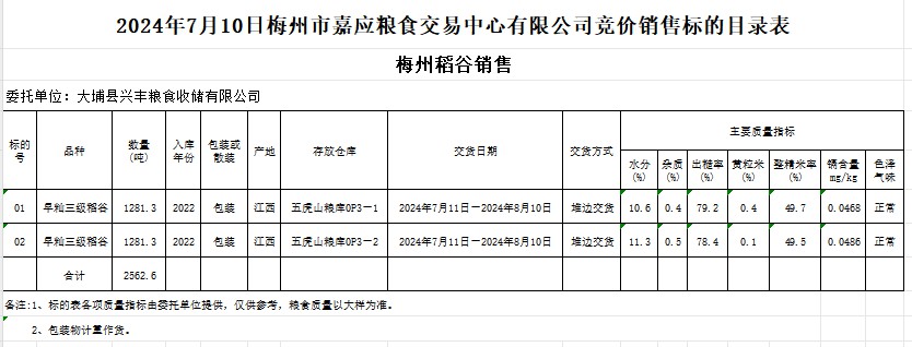 2024年7月10日大埔縣興豐糧食收儲有限公司稻谷銷售