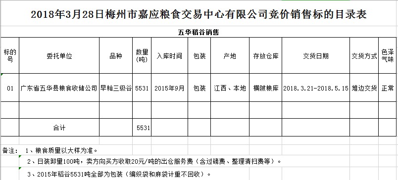 交易時間和地點(diǎn):2018年3月28日(星期三)下午15時30分。廣東省梅州市彬芳大道南161號梅州市糧食交易中心3樓。