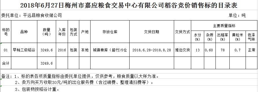 交易時(shí)間和地點(diǎn):2018年6月27日(星期三)上午10時(shí)。廣東省梅州市彬芳大道南161號(hào)梅州市糧食交易中心3樓。