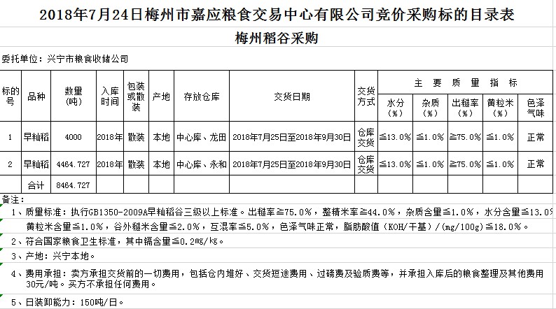 交易時間和地點(diǎn):2018年7月24日(星期二)上午10時。廣東省梅州市彬芳大道南161號梅州市糧食交易中心3樓。