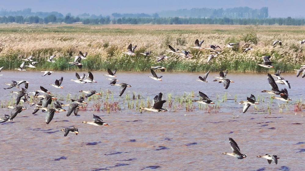 眼下已進(jìn)入候鳥集中遷徙期。這幾日,黃河烏海段迎來上萬只南遷候鳥駐足棲息。他們或翩躚起舞、或追逐嬉戲,勾勒出一幅流動的秋日生態(tài)畫卷。 (李耀 攝)